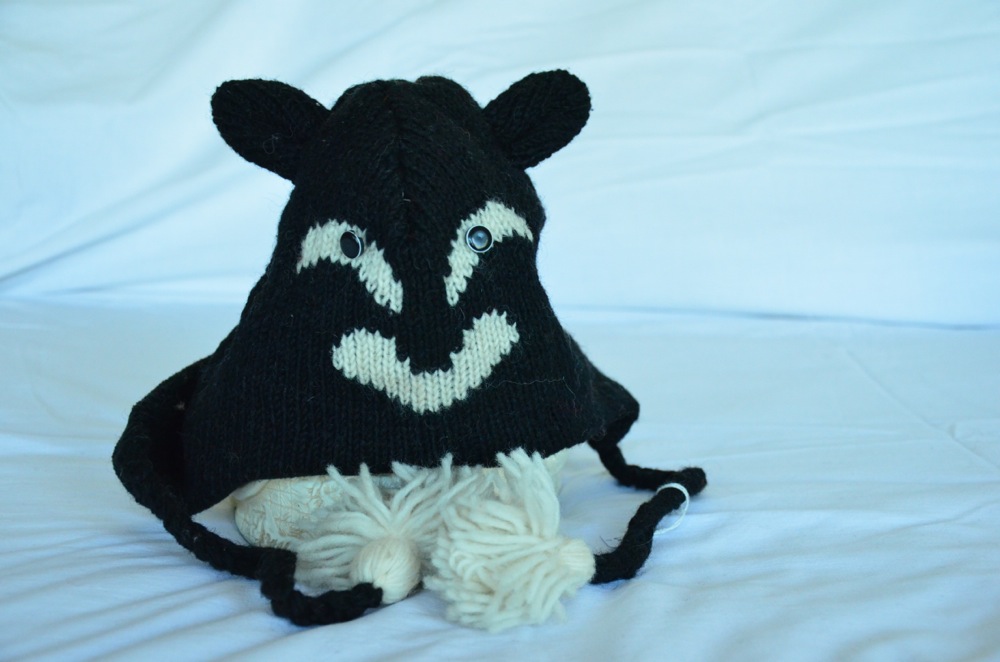 100% Wool – Black and white with button eyes